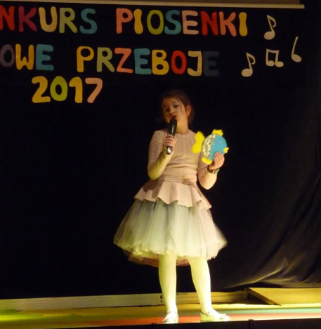 Matylda Grabarczyk z klasy I, która debiutowała w takim konkursie i zaśpiewała piosenkę „Barbie”. Następna była starsza Matylda – Matylda Ząbecka z kl. IIIb. Ona również miała udany debiut w piosence – „Witajcie w naszej bajce”. Trzecią uczestniczką była Zuzanna Borowy z kl. II, która bardzo czysto i niezwykle staranne zaśpiewała piosenkę „Jak rozmawiać trzeba z psem”. Potem, w stroju kota, była Julia Bartoszewska z IIIb ,która bardzo czysto zaśpiewała piosenkę „Biedronka i czarny kot”. Przedostatnią uczestniczką była zdobywczyni I miejsca – uczennica IIIb – Patrycja Siastała. Zaśpiewał piosenkę „Meluzyna” i zachwyciła nią jurorów konkursu.